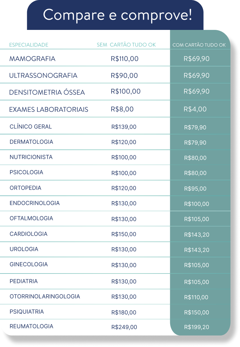 Com o CARTÃO TUDOOK você tem acesso à saúde de qualidade sem pagar caro, esperar meses ou enfrentar filas.